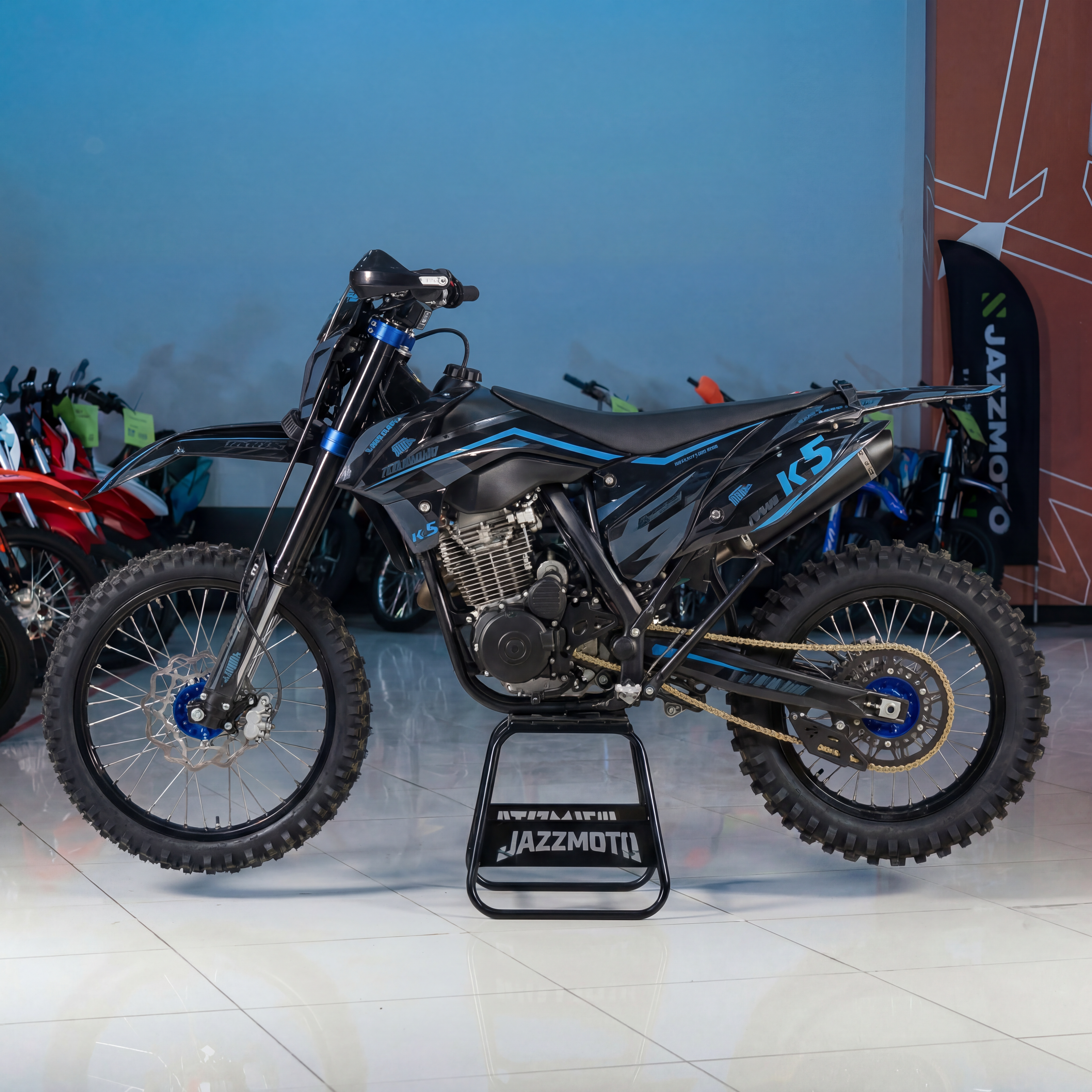 Мотоцикл кроссовый Zuumav K5 CB300F 21/18 Blue — это лёгкий и мощный эндуро мотоцикл, предназначенный для бездорожья, кроссовых трасс и активной езды по пересечённой местности. Благодаря небольшому весу, тяговитому двигателю и регулируемой подвеске модель обеспечивает отличную управляемость и комфортный характер даже на сложных маршрутах. ZUUMAV K5 CB300F подойдет как начинающим райдерам, так и опытным любителям эндуро, которым нужна надежная и простая в обслуживании техника. Отдельного внимания заслуживают выразительный дизайн и растущая популярность модели в сегменте эндуро и кросса.