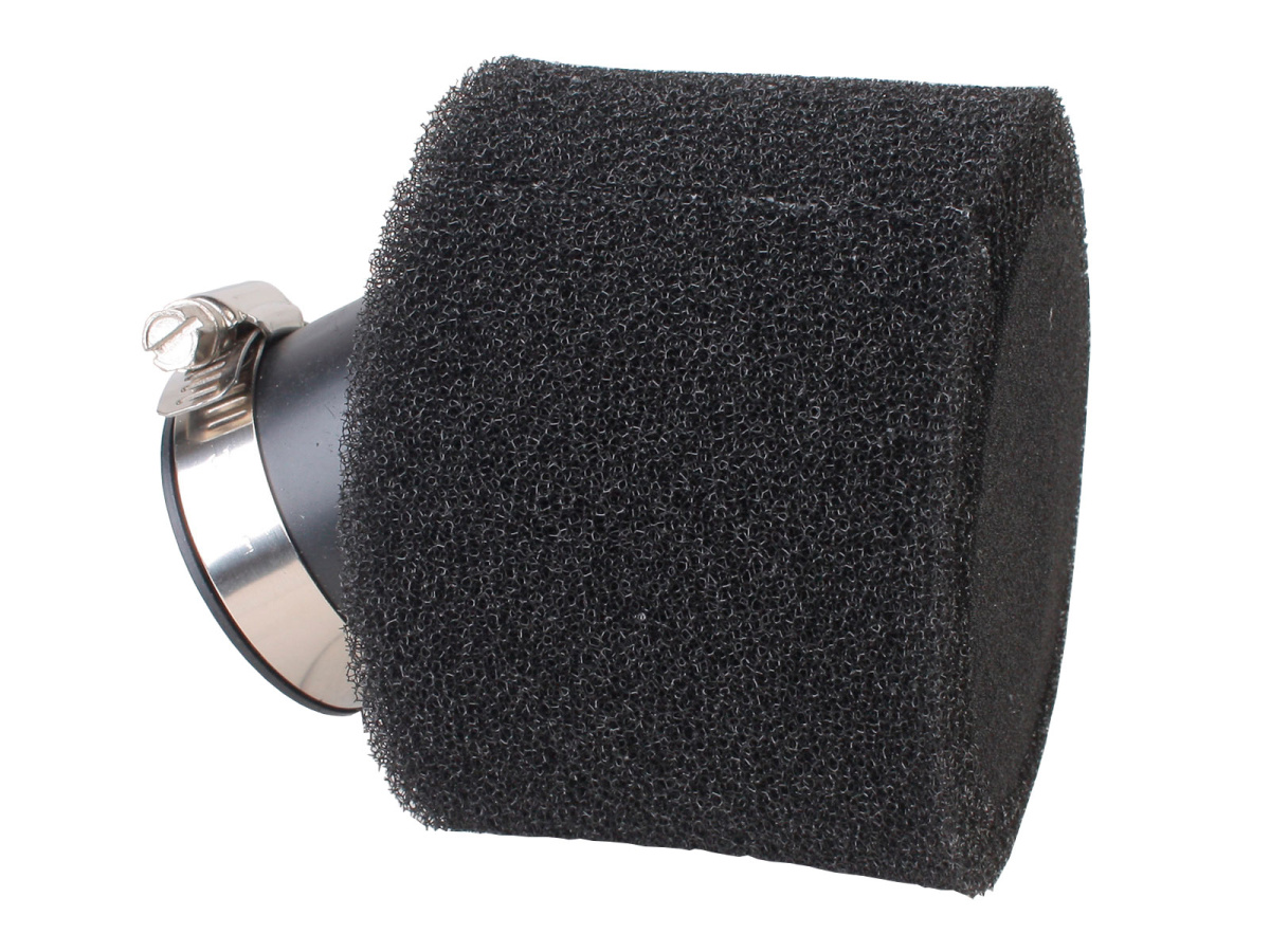 Воздушный поролоновый фильтр нулевого сопротивления для питбайков. Фильтр состоит из прочного резинового патрубка, который плотно садится на раструб карбюратора и обжимается червячным хомутом, двухслойного, поролонового, фильтрующего элемента и спиральной несущей пружины. Обязательным условием применения фильтра является использование пропитки для фильтров. Поролоновый фильтр нулевого сопротивления необходимо периодически промывать и заново наносить липкий пропитывающий состав. Посадочный диаметр фильтра 38 мм. Фильтры также отличаются углом изгиба резинового патрубка. Существуют прямые и изогнутые фильтры. Подходят для большинства карбюраторов, используемых на мопедах, питбайках, мотоциклах, квадроциклах. Карбюраторы типа Mikuni VM 22 и аналогичные.
