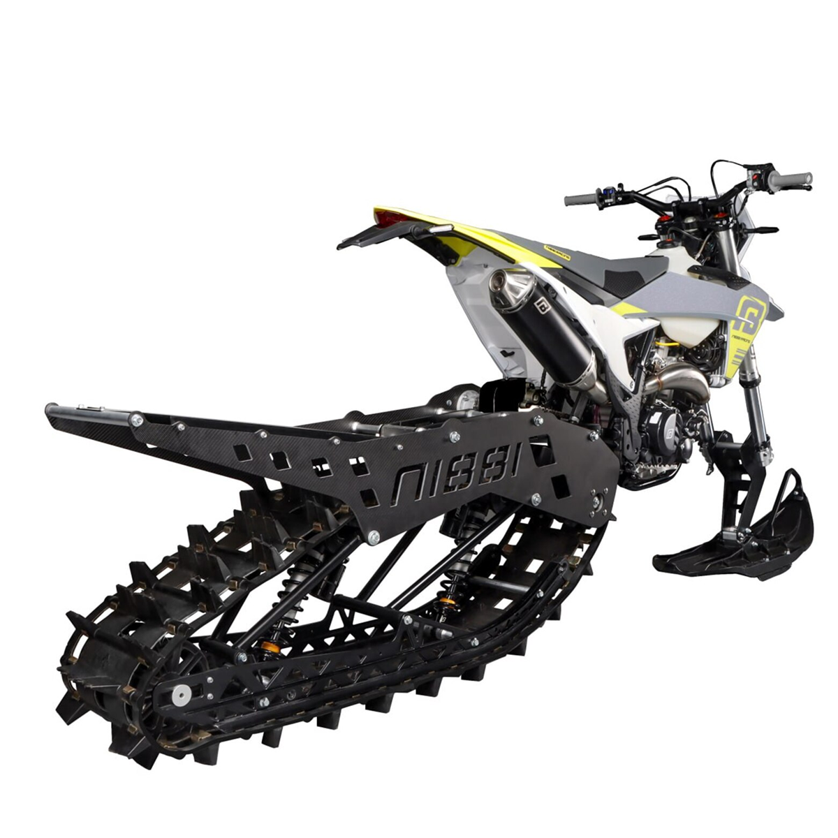 NIBBI Vanguard R‑120 — это гусеничный комплект, позволяющий превратить кроссовый или эндуро мотоцикл в полноценный сноубайк для экстремальных зимних заездов.