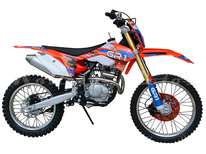 Мотоцикл GR1 F250A Enduro LITE 21/18 - новинка 2019 года. Мотоцикл GR1 по сути является бюджетной репликой всем известного мотоцикла, но при этом его характеристики повторяют достоинства оригинальных моделей, органично сочетая преимущества топовых снарядов с наивысшим качеством комплектующих, отличным уровнем исполнения и высокой производительностью, при всем при этом, предлагая высшую надежность и доступную стоимость.