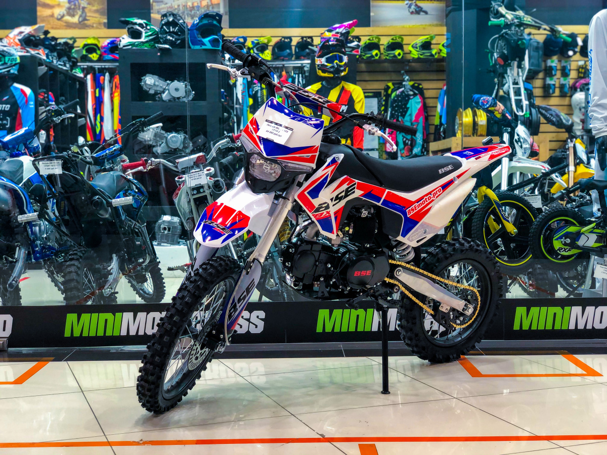 BSE DX 125 это бюджетная версия питбайка. За основу данной модели взята классическая модель BSE MX 125. Данную модель отличают простота конструкции в соотношении с надежностью и простотой эксплуатации. Питбайк оснащен LED фарой головного света, установлены мощные CNC траверсы передней вилки, усиленная приводная цепь Gold. Выносливый и не прихотливый двигатель 4-тактный YX 125 в паре с механической коробкой передач.