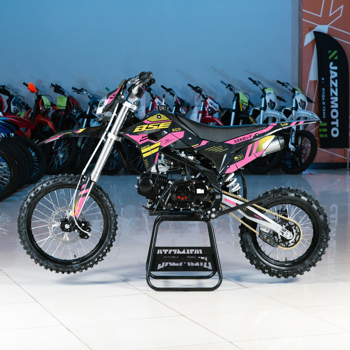 Это популярная модель питбайка BSE с колесами 17/14 дюймов и рамой из хромомолибденовой стали с литыми усилениями. Двигатель 4-тактный Zongshen объемом 125 куб.см с воздушным охлаждением мощностью 10 л.с.. В паре с ним работает карбюратор Jingke PZ26. Питбайк имеет 4-ступенчатую механическую коробку передач, электрический и кик-стартер, а также переднюю и заднюю подвеску с большим ходом. Он оснащен шинами Innova, тормозной системой HSK Racing, ступичными подшипниками NTN и защитой двигателя. Новая графика AK47 основана на скине Bloodsport из игры Counter-Strike: Global Offensive. Питбайк BSE PH125 вы можете приобрести в нашем магазине JAZZMOTO с доставкой по России и СНГ. Официальная гарантия дистрибьютера. Предпродажная подготовка. Действуют выгодные программы кредитования и рассрочки.