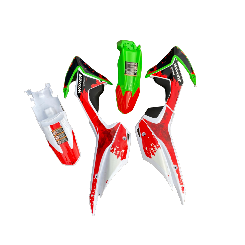 Пластик тип CRF 110, подходит на модели BSE PH и аналоги. В комплект входит: крыло заднее, боковина права, боковина левая, крыло, боковина задняя правая, боковина задняя левая, боковина левая центральная, боковина правая центральная, пластик передний левый, пластик передний правый.